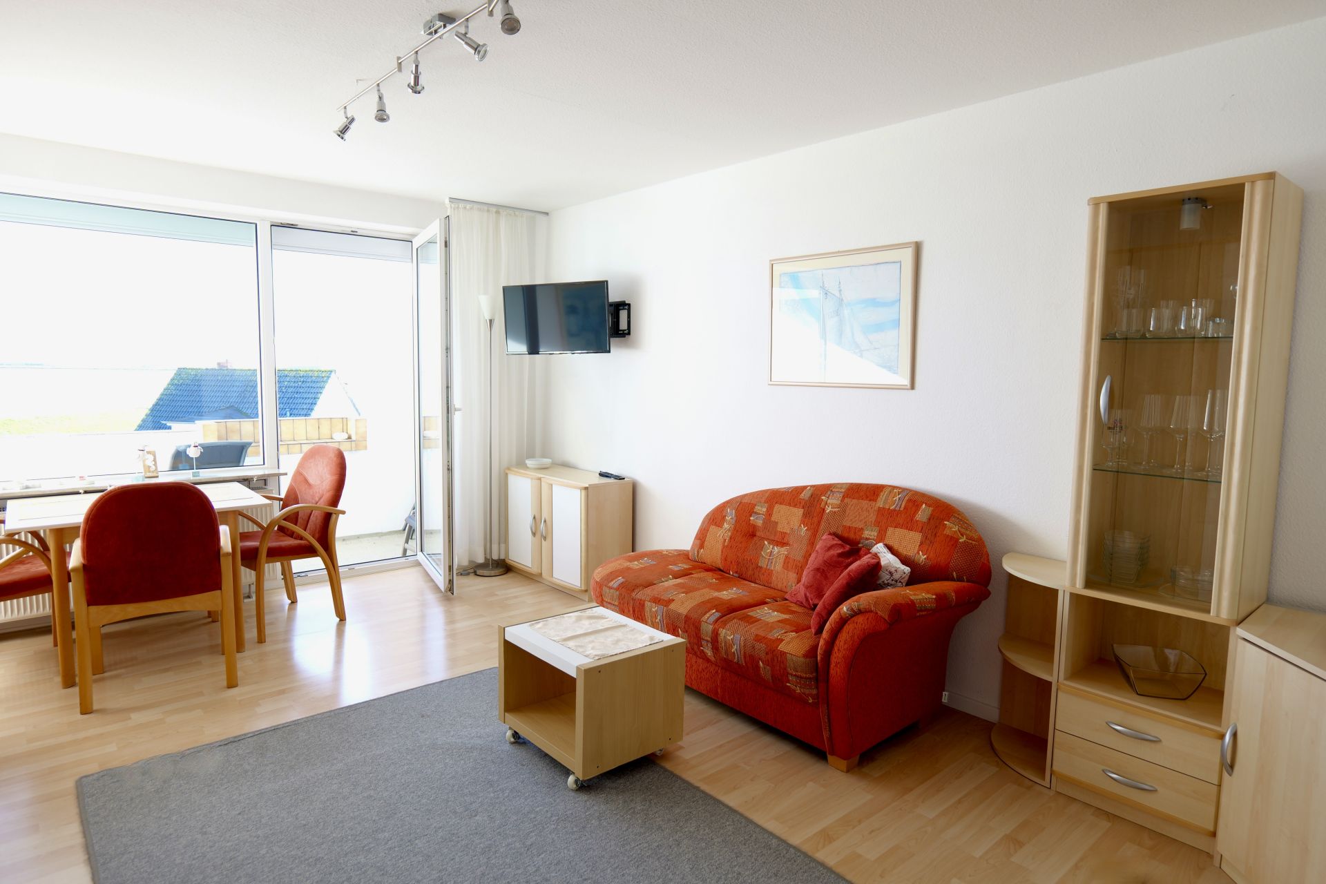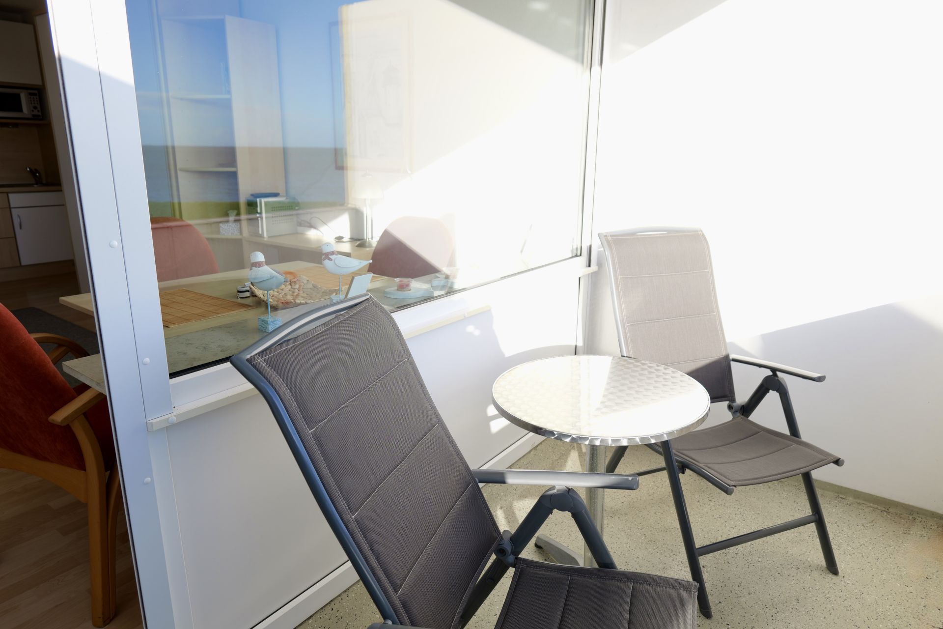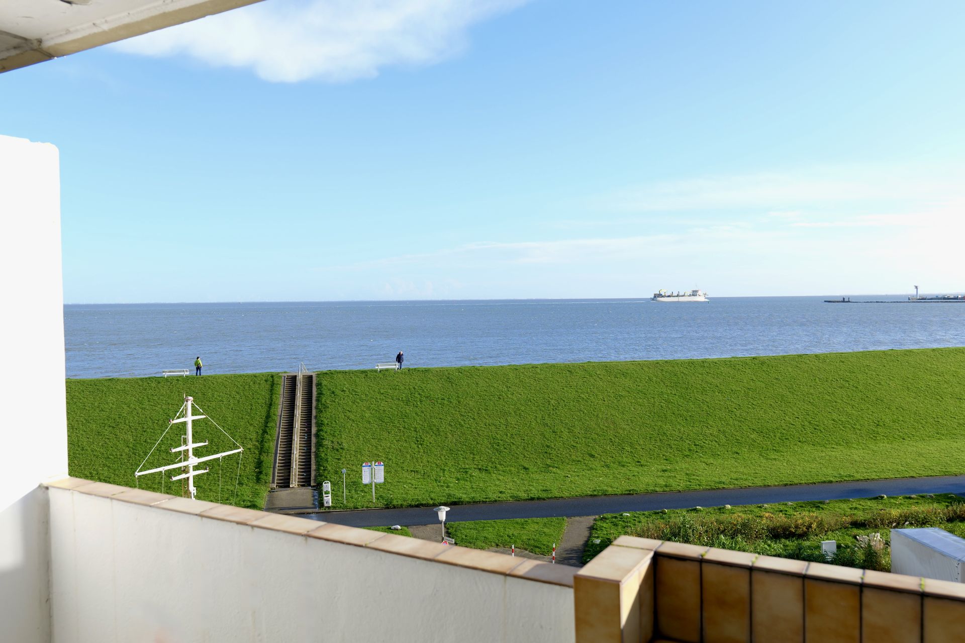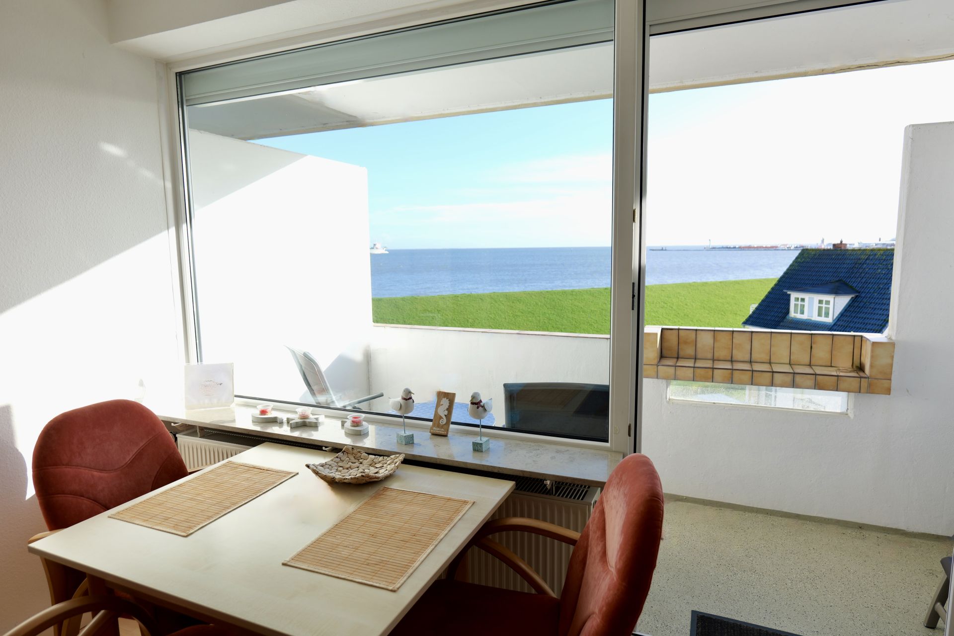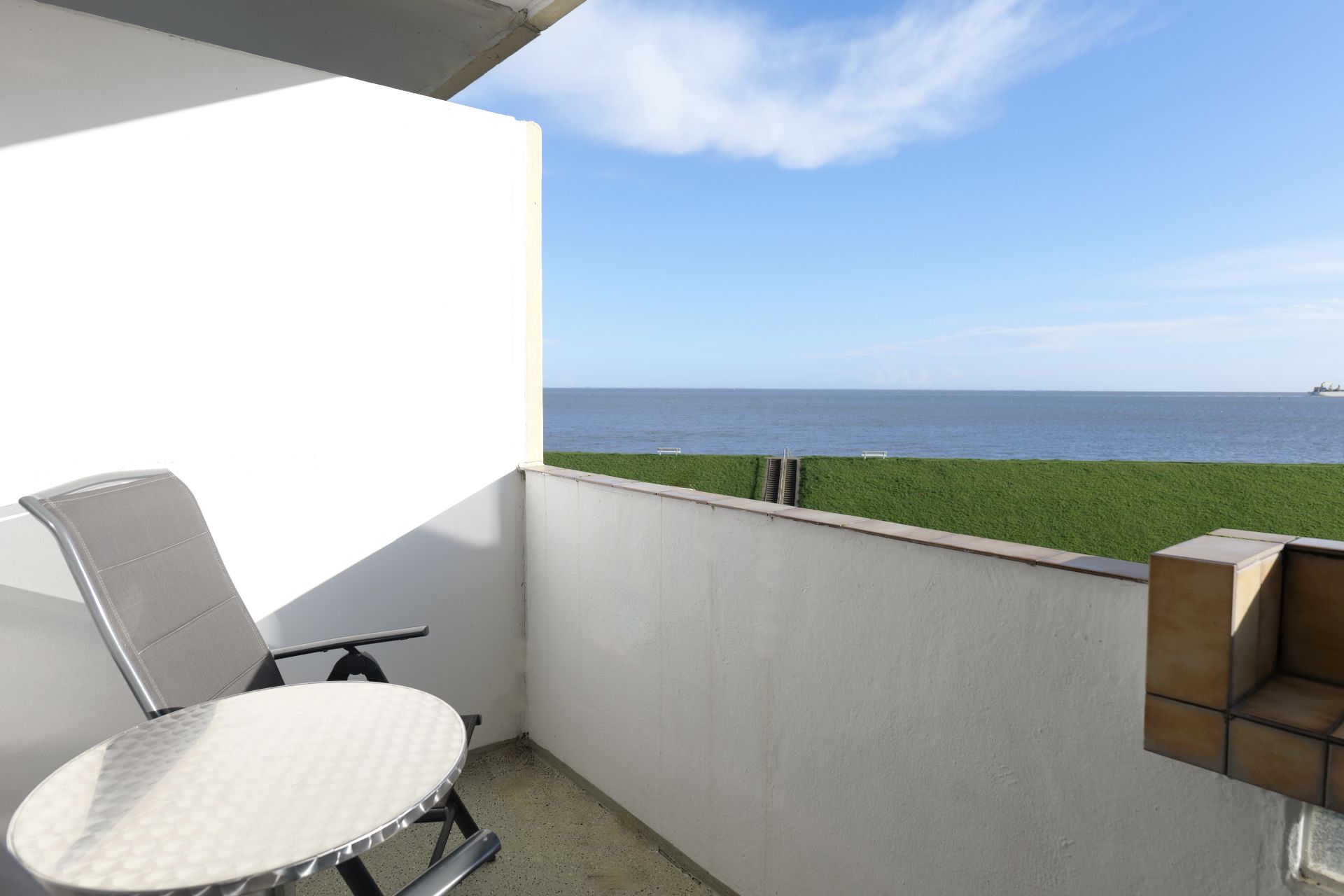 Ein weiteres Highlight dieser Wohnung ist der ansprechende Balkon, der sich perfekt für entspannte Stunden an der frischen Luft eignet. Von hier kannst du Schiffe beobachten oder den Blick auf das Meer genießen, den Tag mit einem Frühstück im Freien beginnen oder den Abend mit einem Glas Wein ausklingen lassen.