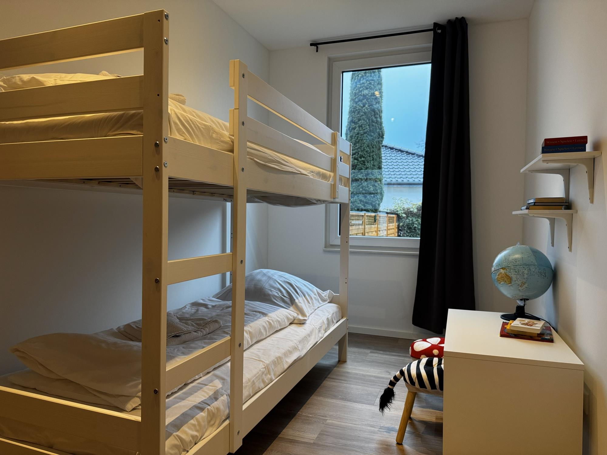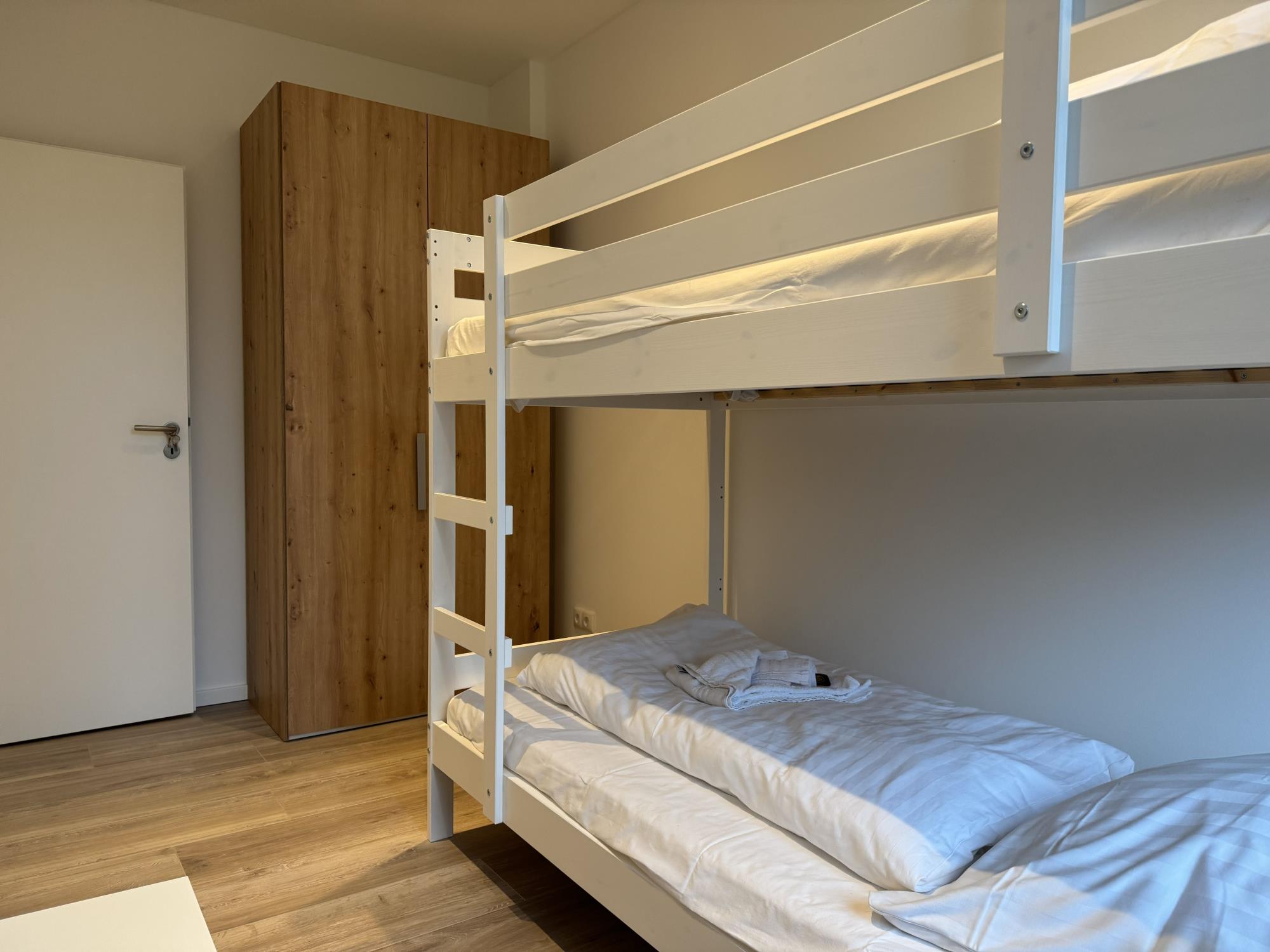 Im ersten Schlafzimmer erwartet Sie ein komfortables Doppelbett (180 x 200 cm) sowie ein geräumiger Kleiderschrank. Das zweite Schlafzimmer ist mit einem Etagenbett (90 x 200 cm) ausgestattet und verfügt ebenfalls über einen Schrank – ideal für Kinder oder Jugendliche.