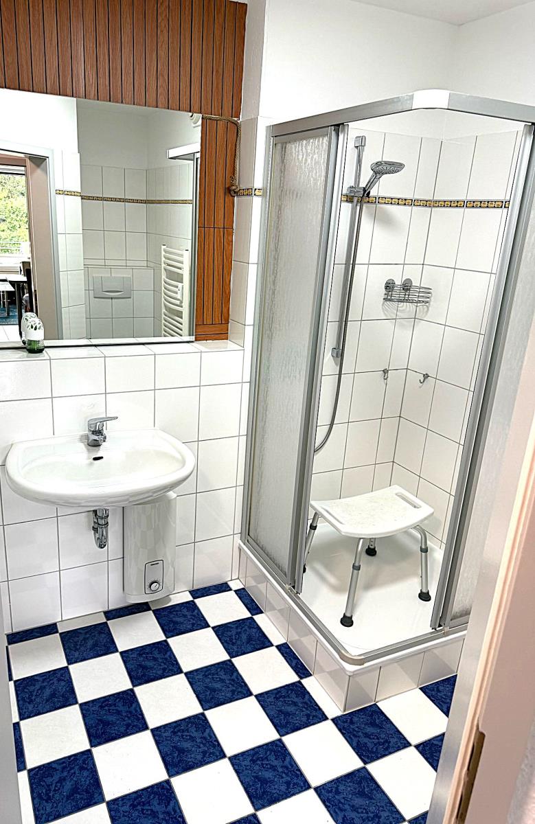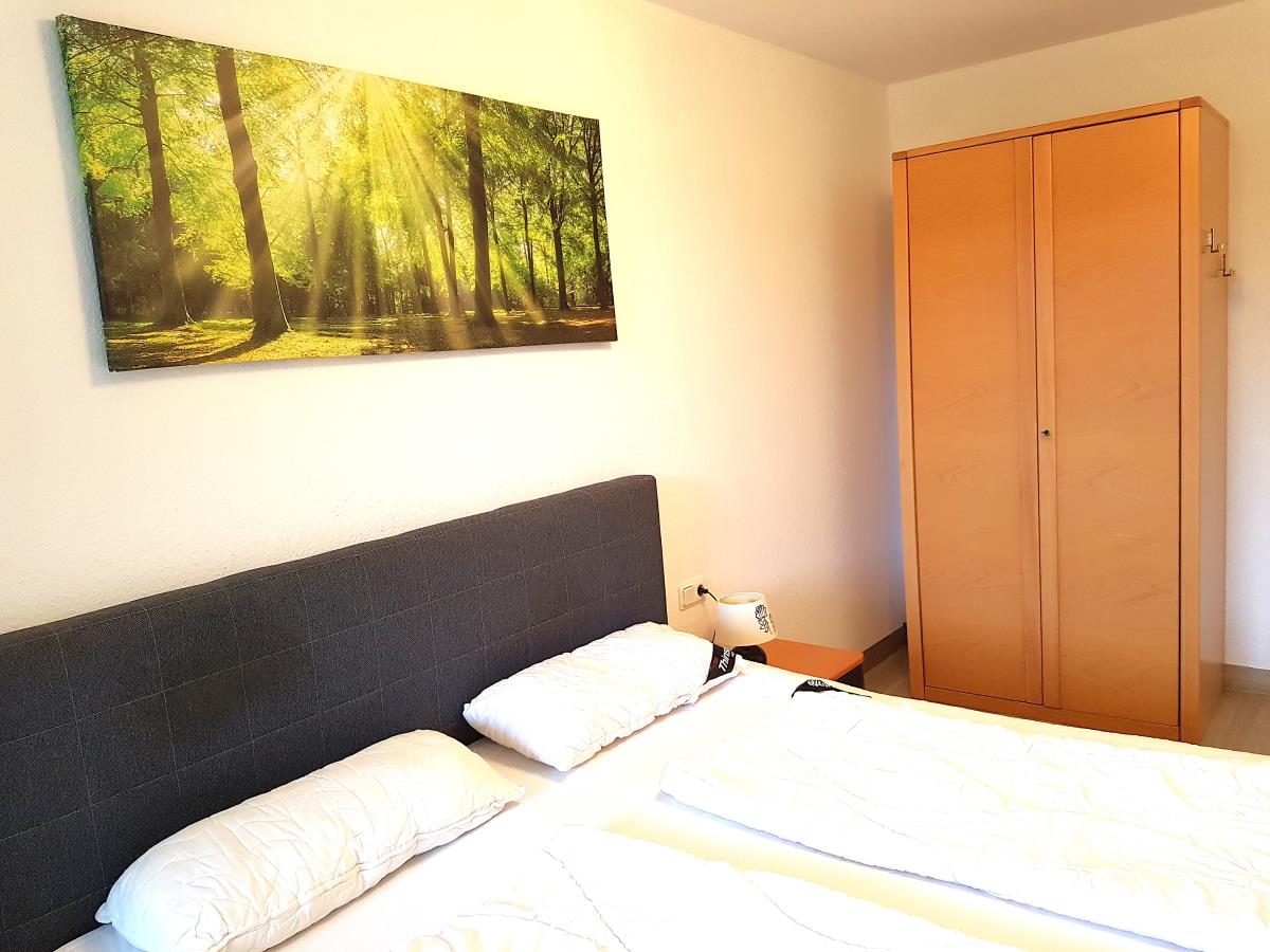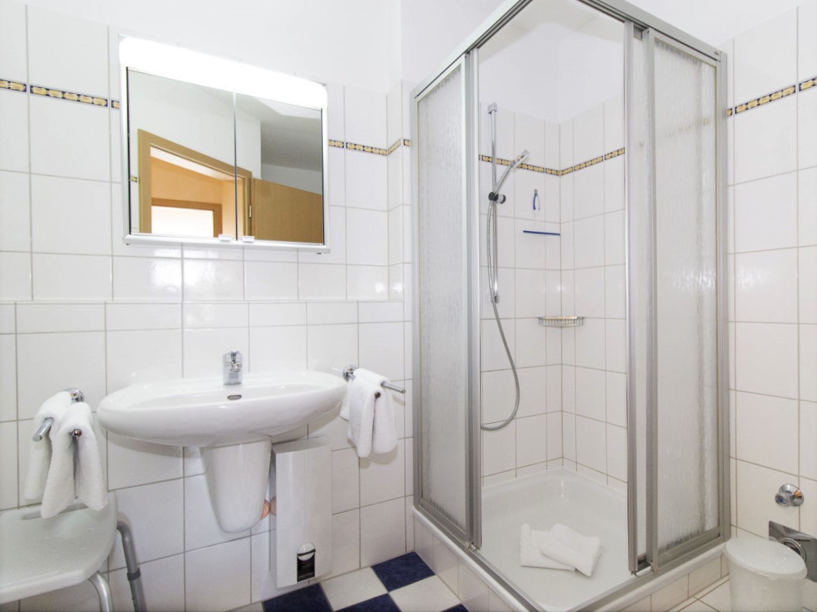 Das separate Schlafzimmer verfügt über ein Boxspringbett (180x200) und einen zweiten TV. Das funktionelle Bad ist mit Dusche/WC und Fön ausgestattet. Der barrierefreie Eingang und Aufzug ermöglichen einen angenehmen Aufenthalt für ältere Gäste.