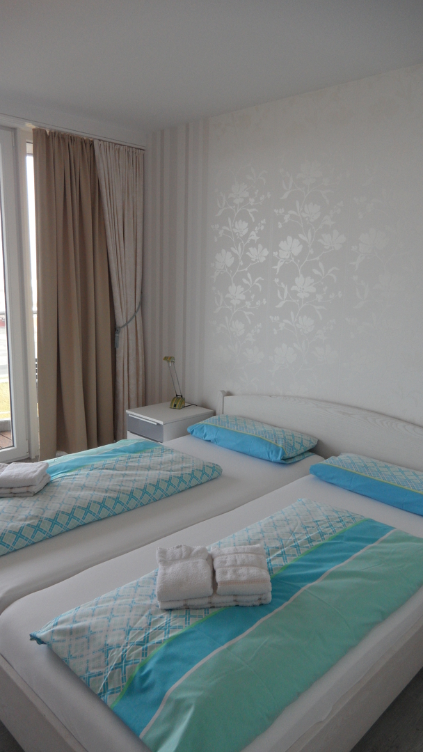 Erleben Sie unvergessliche Urlaubstage in unserer luxuriösen Ferienwohnung in der 4. Etage des Hauses, die bequem über den Aufzug von der Tiefgarage aus erreichbar ist. Mit einer großzügigen Fläche von ca. 65 m² bietet diese stilvolle Unterkunft Platz für bis zu 4 Personen – ideal für Familien oder Freunde, die gemeinsam entspannen möchten.