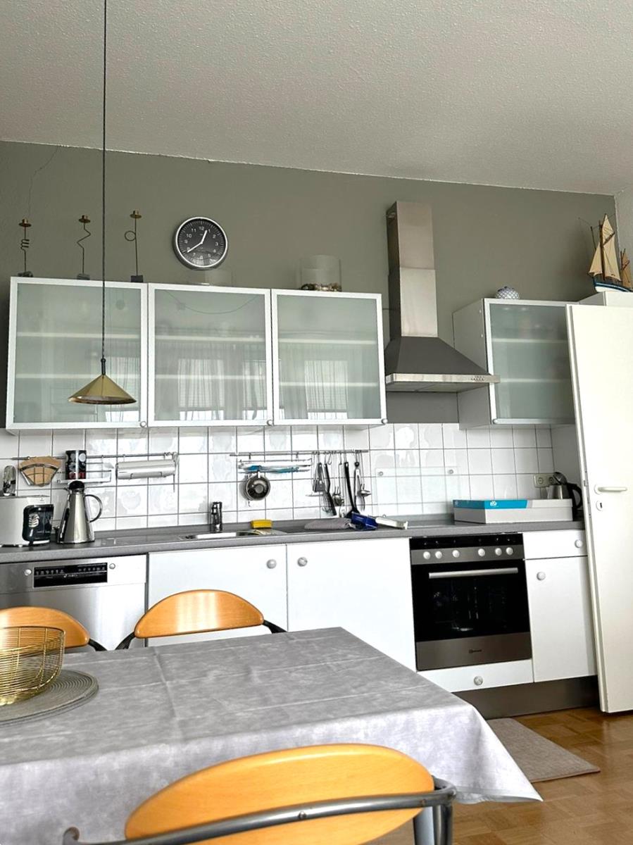 Diese ansprechende Ferienwohnung in der Hochparterre bietet Ihnen die ideale Grundlage für einen erholsamen Urlaub. Der lichtdurchflutete Wohnraum mit Blick auf die Grimmershörnbucht und den Schifffahrtsweg lädt zum Entspannen ein. Die integrierte Küchenzeile ist vollständig ausgestattet und ermöglicht es Ihnen, köstliche Mahlzeiten zuzubereiten. Sie finden hier eine Spülmaschine, Mikrowelle, Kaffeemaschine sowie einen Kühlschrank mit Gefrierfach, ergänzt durch Geschirr und Kochutensilien.