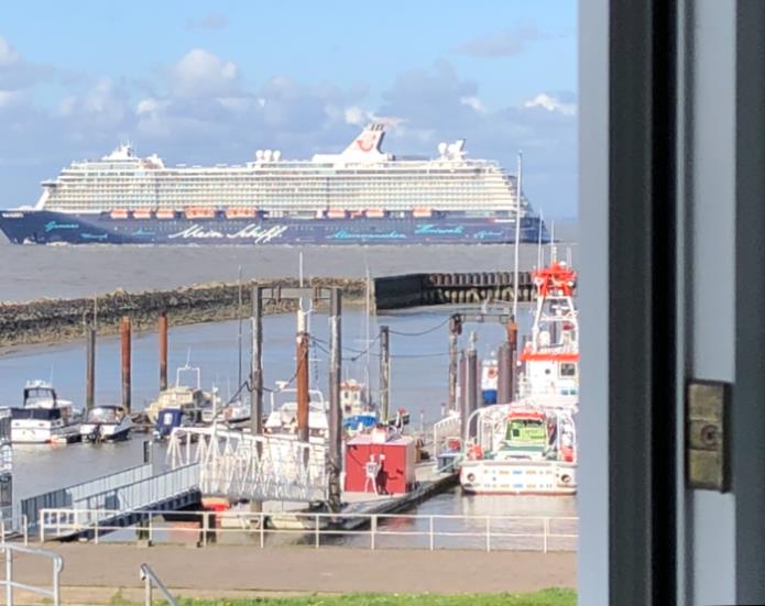 Das Haus Seeterrassen, direkt hinter dem Deich gelegen, bietet Ihnen alles für einen perfekten Aufenthalt. Genießen Sie den Weitblick aufs Meer von Ihrem kleinen, windgeschützten Balkon und beobachten Sie das Treiben auf dem Weltschifffahrtsweg.