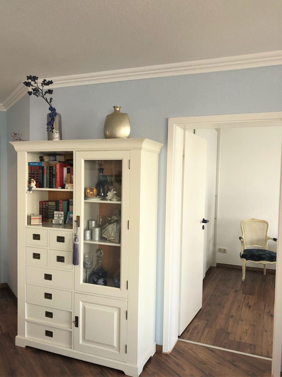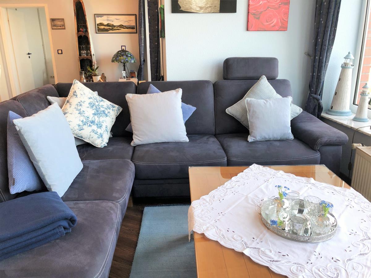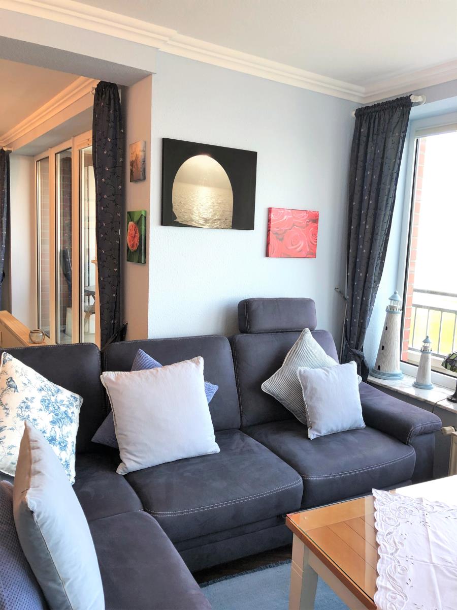 Willkommen in dieser geschmackvollen Ferienwohnung im Haus Seeterrassen, gelegen in der 2. Etage. Der große Balkon bietet Ihnen die Möglichkeit, die frische Nordseeluft und den Blick auf das Meer zu genießen. Mit einer Fläche von rund 79 m² erwartet Sie ein großzügiger Wohnbereich mit integriertem Essplatz, ein Schlafzimmer mit einem komfortablen Doppelbett (2 x 90 x 200 cm) (erhöht) und einem großen Kleiderschrank sowie ein modernes Duschbad mit Regendusche und bodengleichem Zugang.