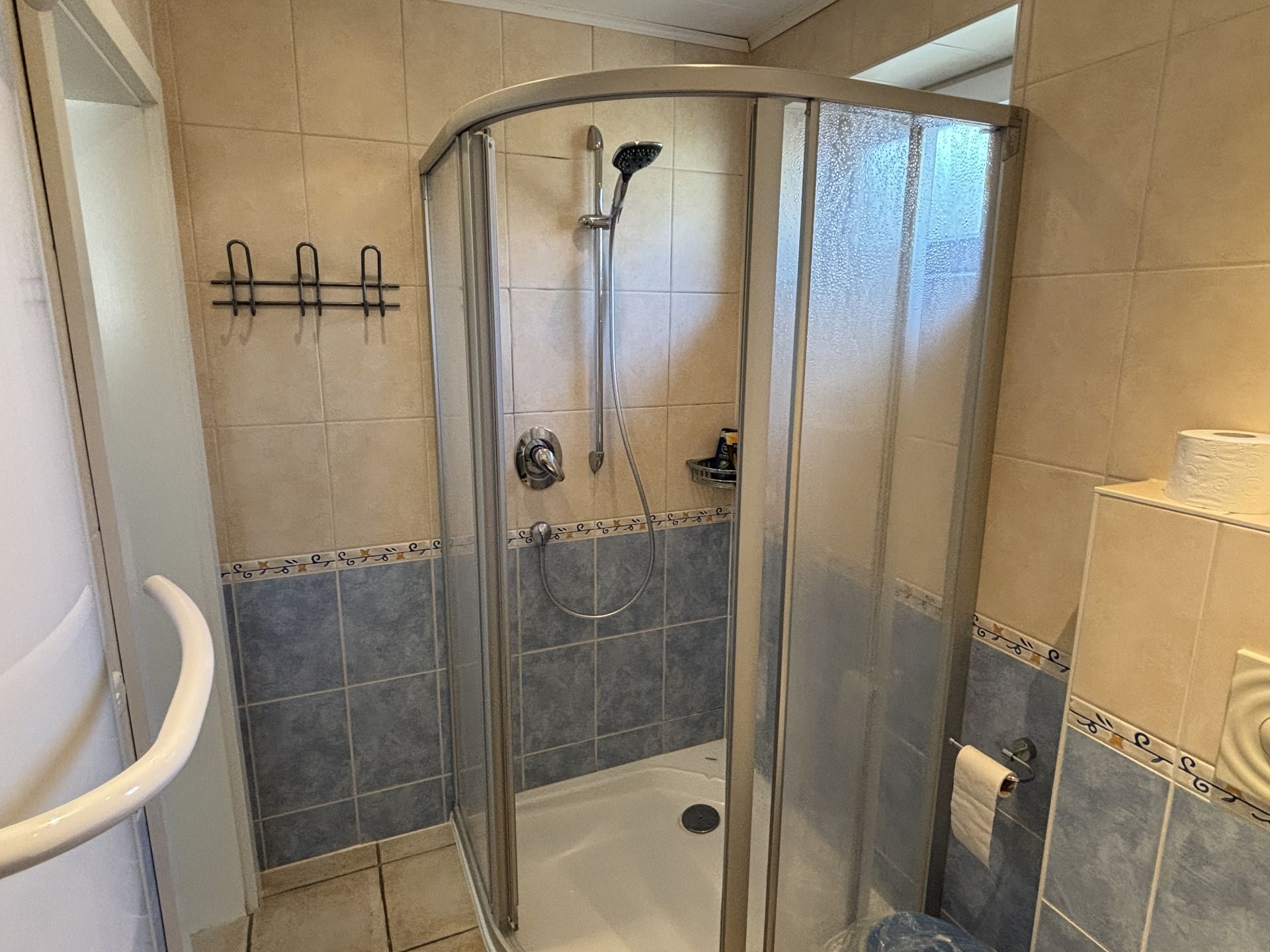 Im Dachgeschoss befinden ...Das 65m² Ferienhaus befindet sich in Cuxhaven-Duhnen. Es besteht aus einem Wohn/Essbereich mit integrierter Küchenzeile, einem Bad mit Dusche, WC und großem Waschbecken, sowie einem separaten Abstellraum mit Waschautomat.