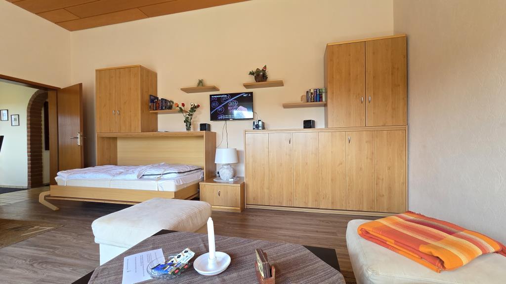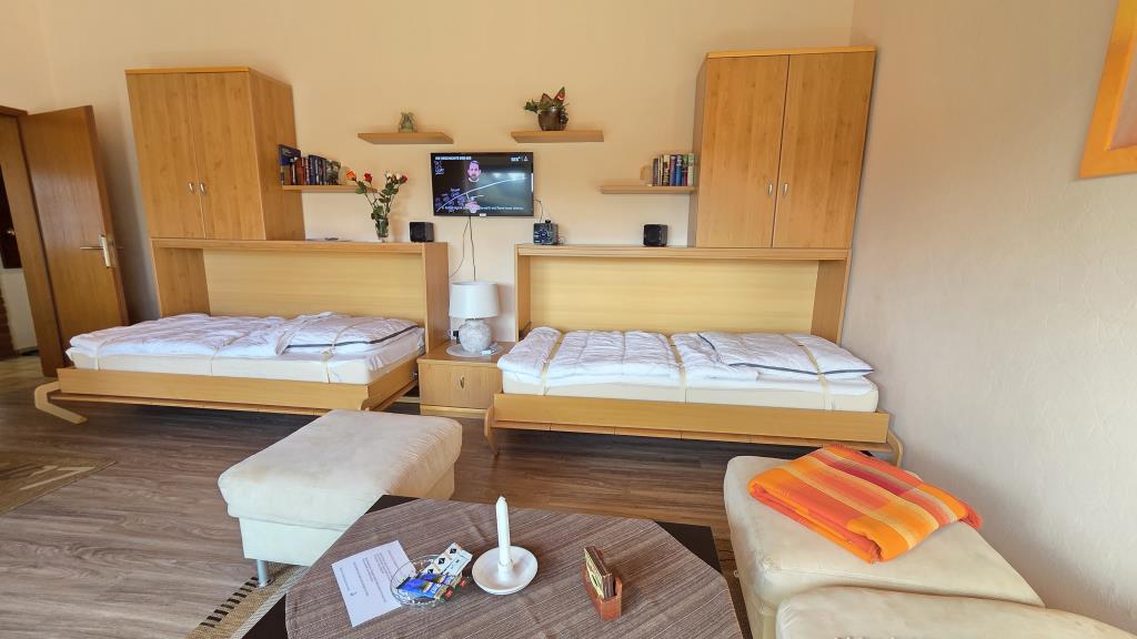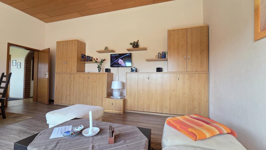 sowie ein Wohnraum mit zwei komfortablen Schrankbetten – ideal auch für Familien.