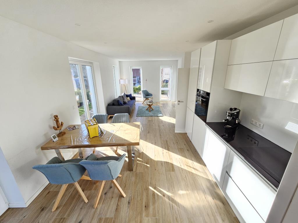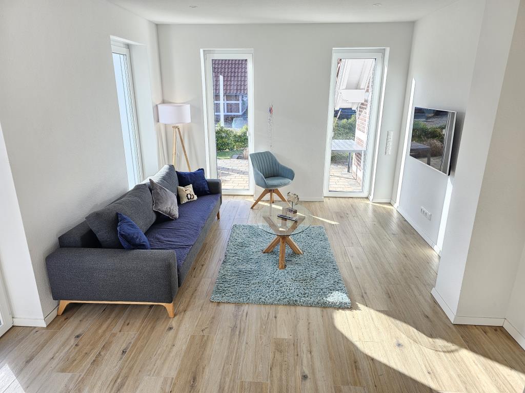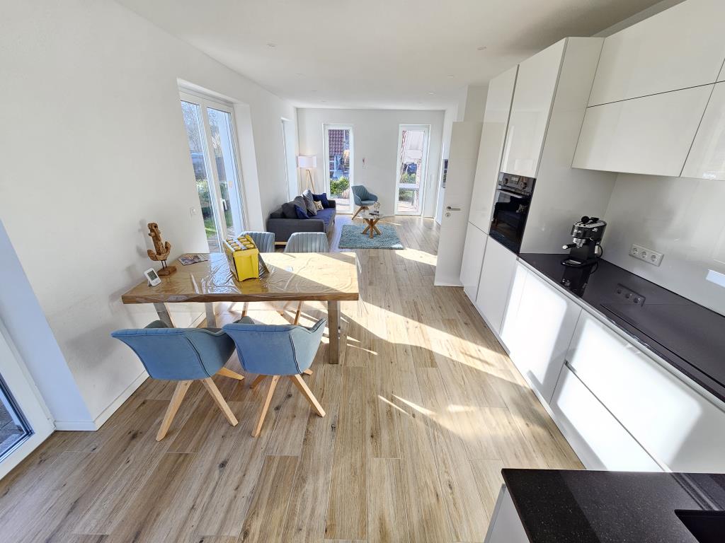 Im Erdgeschoss des Hauses finden Sie einen gemütlichen Wohnraum von dem man direkt auf die Terrasse und in den großen Garten am Haus gelangt. Die hochwertige Küchenzeile und der Esstisch laden dazu ein, kochen und schnacken gemütlich miteinander zu verbinden. Ein Badezimmer mit Dusche / WC steht im Erdgeschoss zur Verfügung. Die Terrasse mit dem großen Garten laden zu entspannten Abenden ein. Desweiteren befindet sich im Erdgeschoß ein Abstellraum mit einer Waschmaschine, die Sie kostenlos nutzen dürfen. Im Obergeschoss finden Sie 2 Schlafräume (1x ein Doppelbett und 1x Einzelbett ausziehbar bis 1,60x2m) sowie ein schönes Badezimmer mit Dusche / WC und einer Badewanne