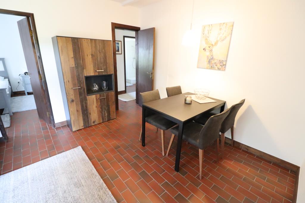 Ein Highlight der Ferienwohnung ist die Terrasse, von der aus Sie den wunderschönen Blick in die umliegende Natur genießen können. Beginnen Sie Ihren Tag mit einem Frühstück im Freien oder entspannen Sie abends bei einem Glas Wein – die Terrasse bietet den perfekten Platz zum Abschalten und Genießen.