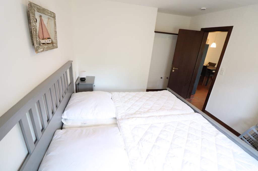 Die Wohnung verfügt über zwei gemütliche Schlafräume: ein Schlafzimmer mit einem komfortablen Doppelbett (1,80 m x 2 m) und ein weiteres Schlafzimmer mit einem Einzelbett (0,90 m x 2 m) – perfekt für kleine Familien oder Paare, die eine zusätzliche Schlafmöglichkeit wünschen. Der einladende Wohnraum bietet ein Schlafsofa und ist mit einem modernen TV ausgestattet, ideal für entspannte Abende nach einem Tag voller Erkundungen.