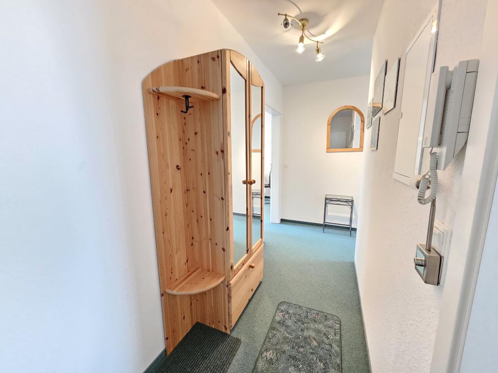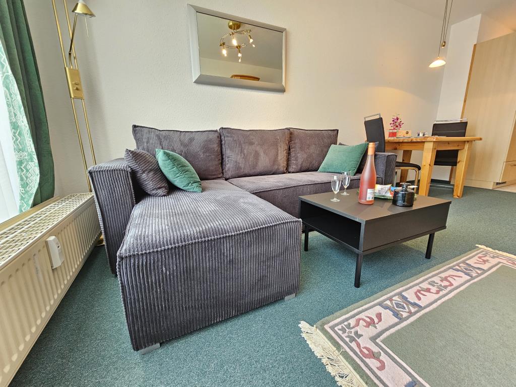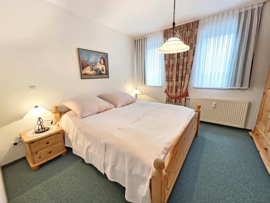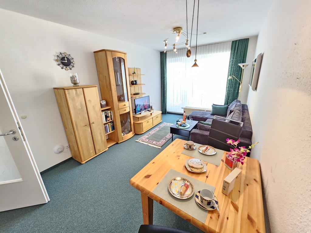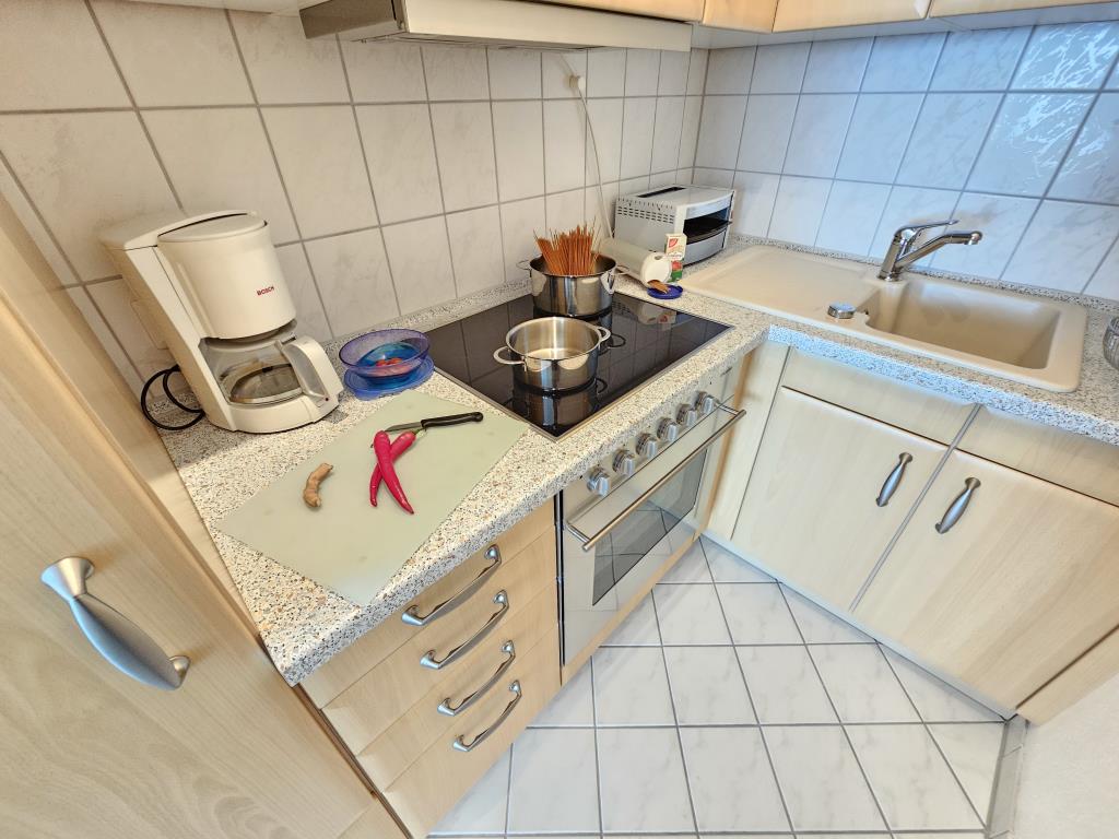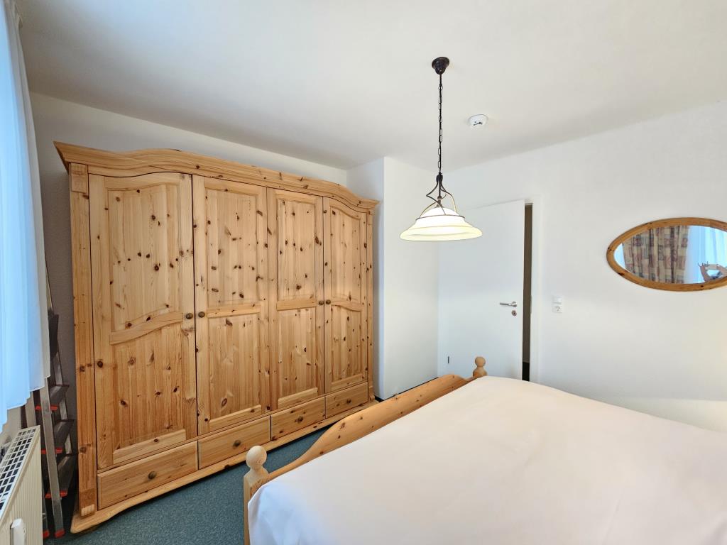 Die Wohnung verfügt über einen separaten Schlafraum mit einem komfortablen Doppelbett und großen Kleiderschrank. Der Wohnraum ist hell und einladend gestaltet und bietet ausreichend Platz für gemeinsame Stunden. Genießen Sie den Blick auf das Weltkulturerbe Wattenmeer und die Insel Neuwerk. Die Küchenzeile mit Backofen und Kühlschrank ermöglicht Ihnen, Ihre Lieblingsgerichte auch im Urlaub ganz einfach zuzubereiten. Ein kleiner Essbereich rundet das gesamte Ambiente ab.