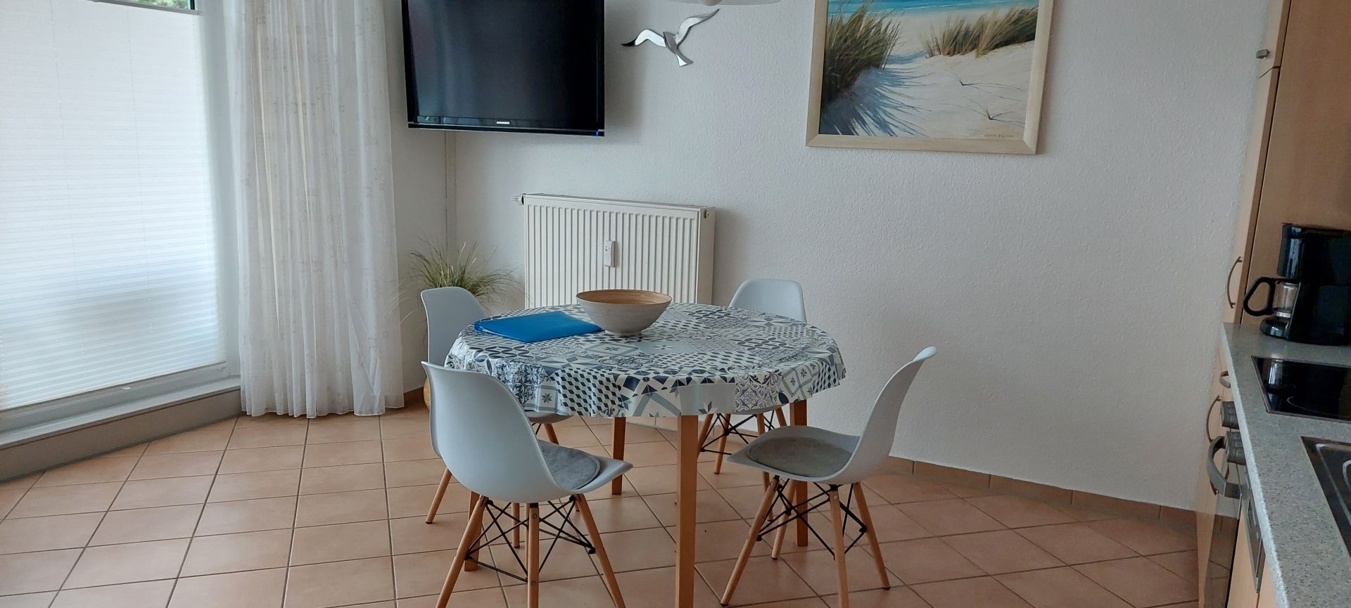 Die gemütliche Ferienwohnung bietet Ihnen mit drei Räumen im Parterre auf ca. 58 m² Wohnfläche, ideal Platz für bis zu vier Personen.