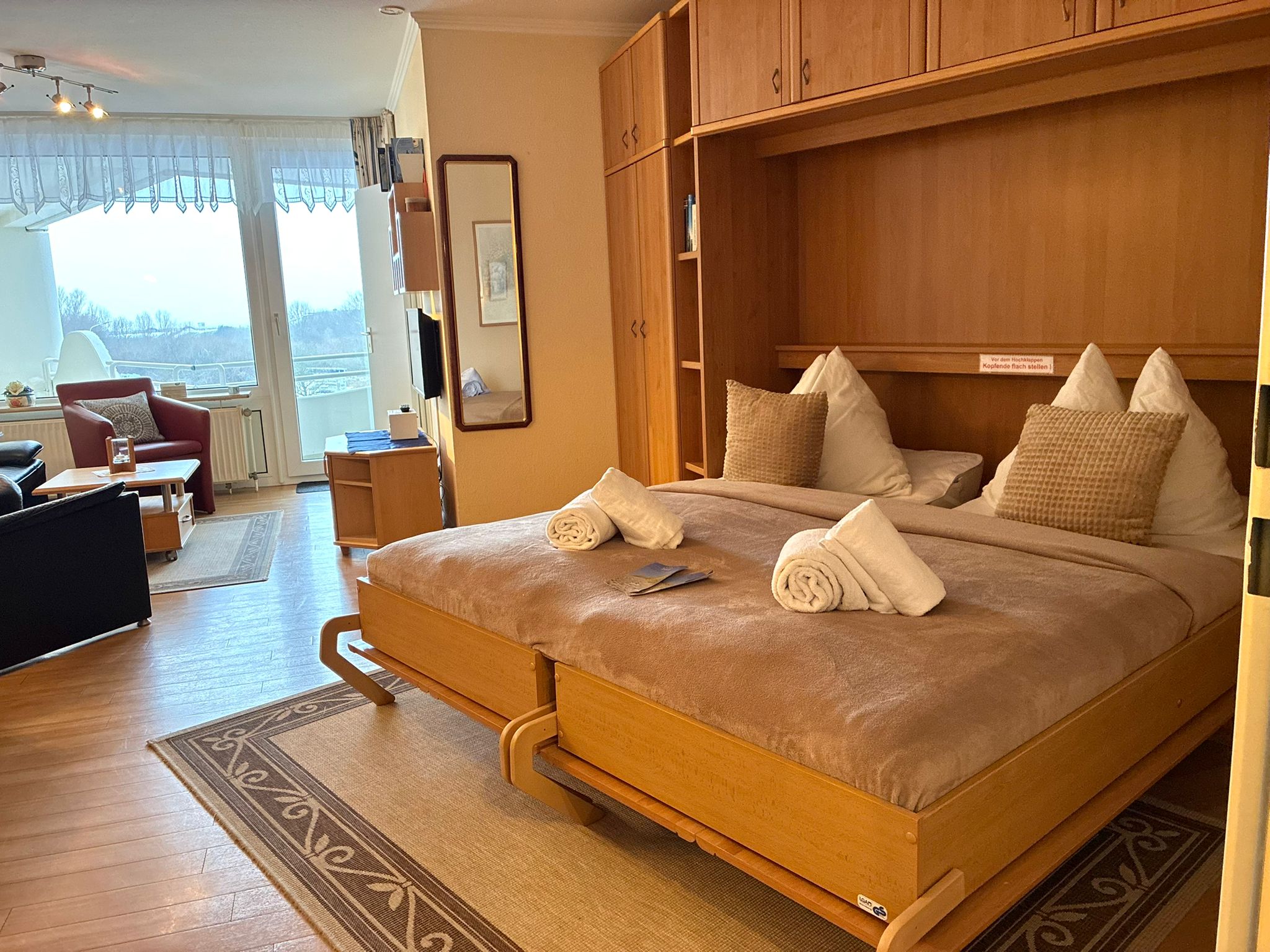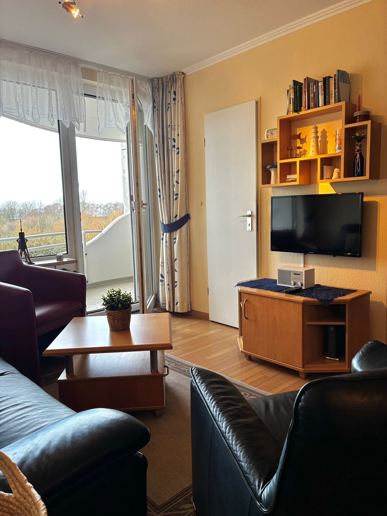 Gemütliche, helle, freundliche Ferienwohnung, 42 m², für 1-3 Personen mit Teilseesicht auf die Nordsee und den Weltschifffahrtsweg Elbe, großer Balkon mit Bestuhlung und Liege. Nur 100 m zum Strand. Kostenlose Nutzung von Schwimmbad mit Gegenstromanl...Gemütliche, helle, freundliche Ferienwohnung, 42 m², für 1-3 Personen mit Teilseesicht auf die Nordsee und den Weltschifffahrtsweg Elbe, großer Balkon mit Bestuhlung und Liege. Nur 100 m zum Strand. Kostenlose Nutzung von Schwimmbad mit Gegenstromanlage, 2 Saunen, Whirlpool, Fitness- und Tischtennisraum, Münz-Solarien, Waschmaschinen und Trockner. Tiefgaragenstellplatz und Fahrradabstellraum.