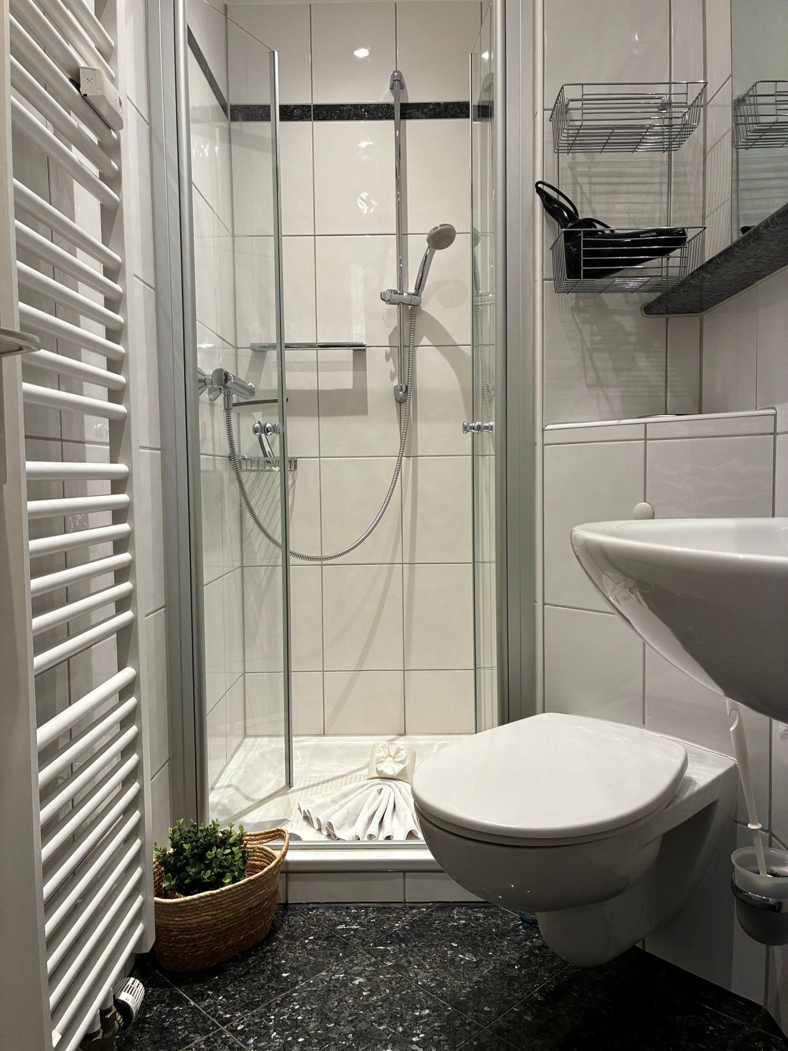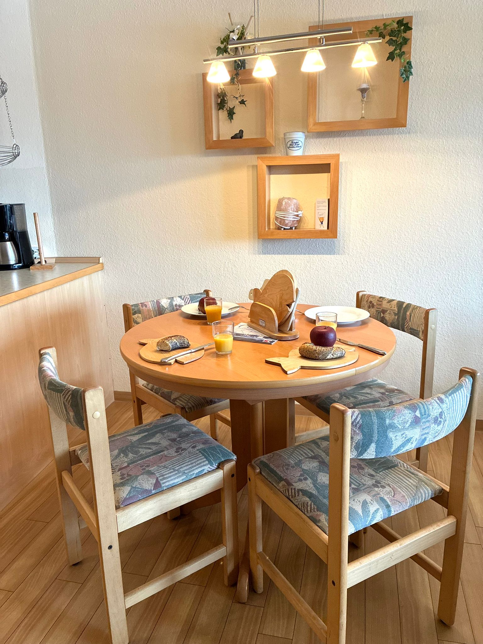 Wohn-/Schlafraum mit zwei Schrankklappbetten und einem zusätzlichem kleinen Schlafzimmer/-koje (nicht begehbar) mit franz. Bett (140x200). Allergikerfreundlicher Laminatboden. Kompl. eingerichtete Küchenzeile mit einer pfiffigen Bartheke. Spülmaschine, Mikrowelle, Backofen, Kühlschrank mit Gefrierfach, Cerankochfeld, Toaster, Kaffeemaschine, Eierkocher usw. Badezimmer mit Dusche und Toilette, Fön. Bad komplett neu saniert... Kabel-TV, Flachbild-Plasma-Bildschirm, Radio/CD, Telefon und Fernglas.